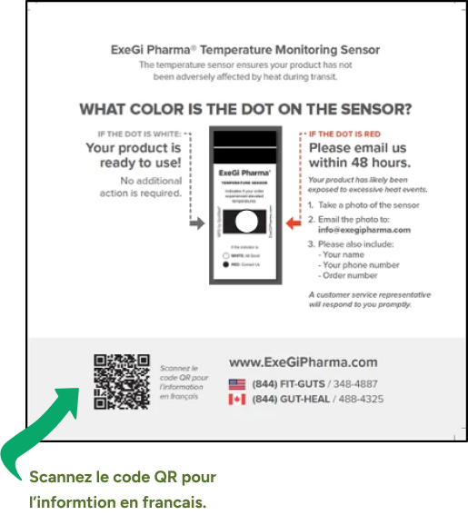 Your order includes the following card, which incorporates a temperature monitoring sensor. This sensor is specially calibrated for Visbiome, and helps ensure your order did not experience impactful heat events during transit to you.
